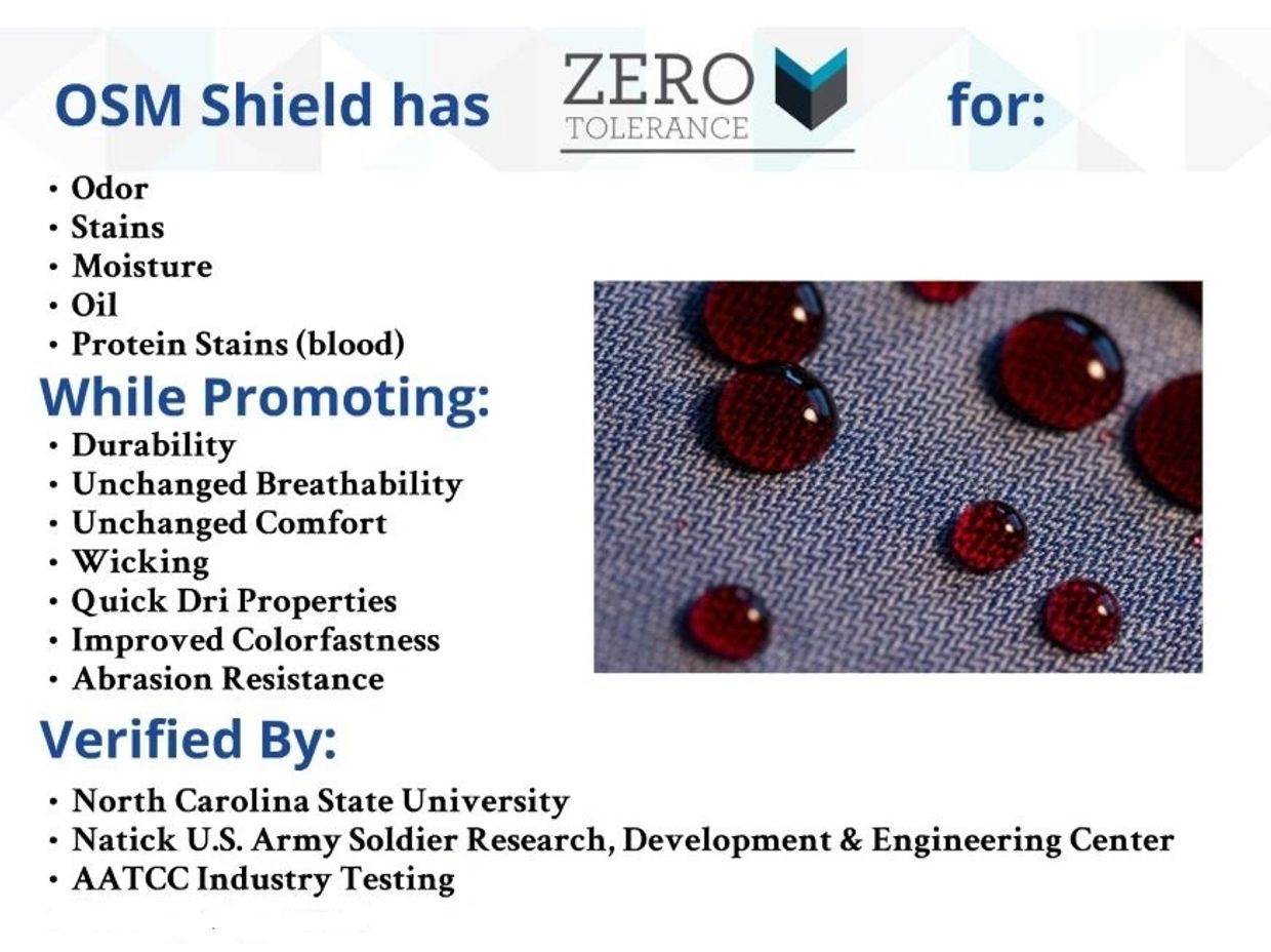 OSM Shield is one of the top fabric technologies that provides maximum water resistance, stain-resistance, and odor-resistance properties for a wide range of industries:
