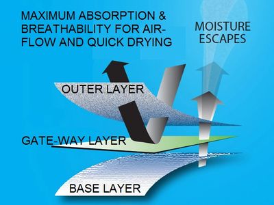 KwickWick is neither a Chemical Treated Yarn nor a Chemical Fabric Coating, but a Multi-Layer Designed Fabric Technology.